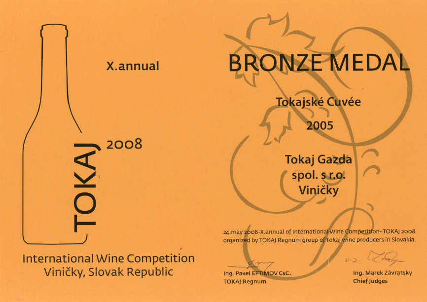 Bronzová medaila na medzinárodnej súťaži vín 2008